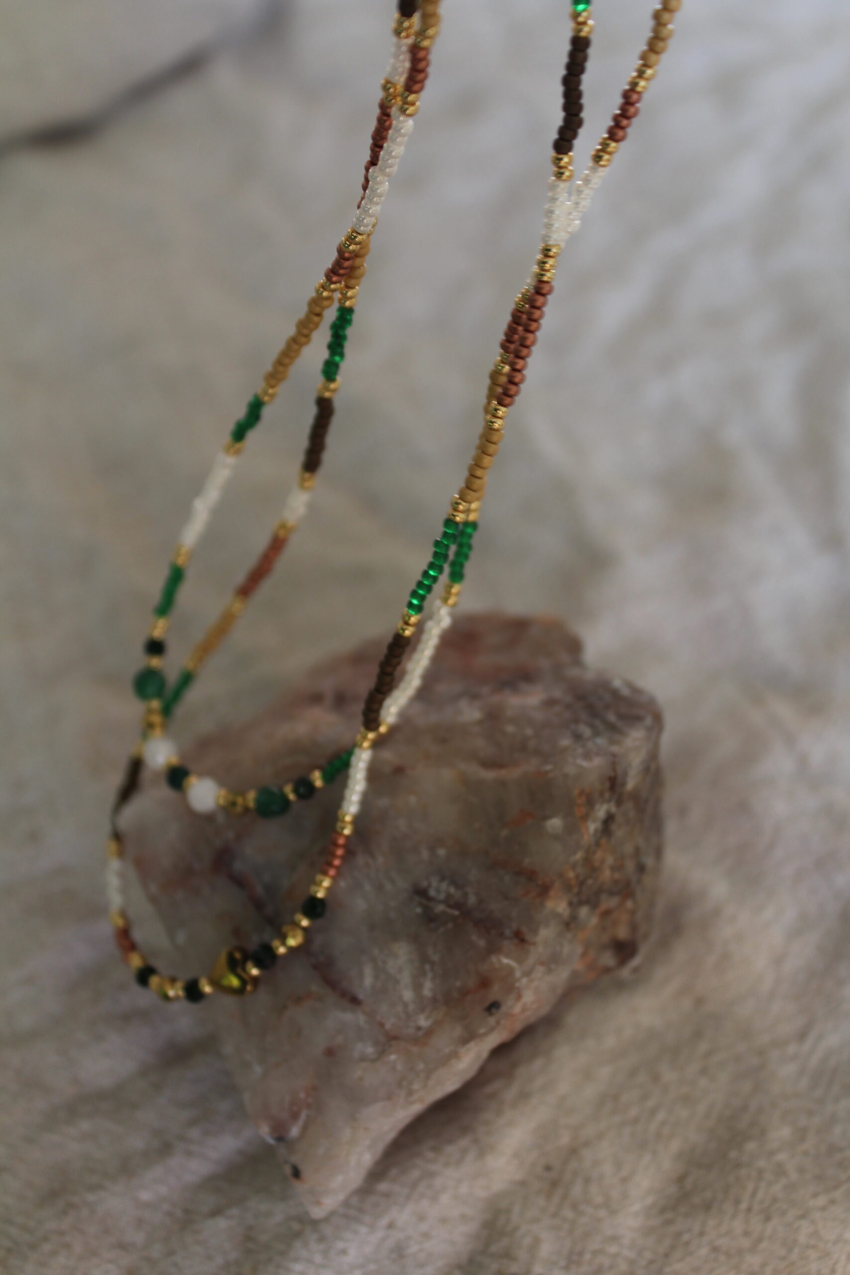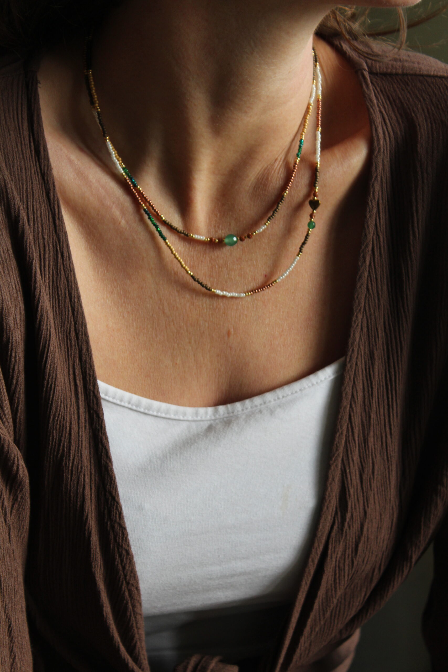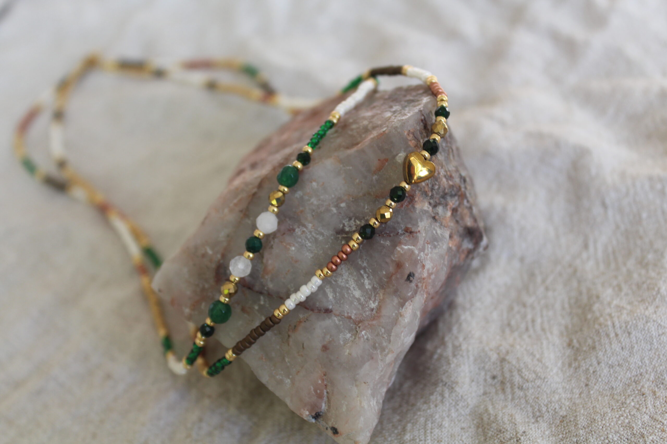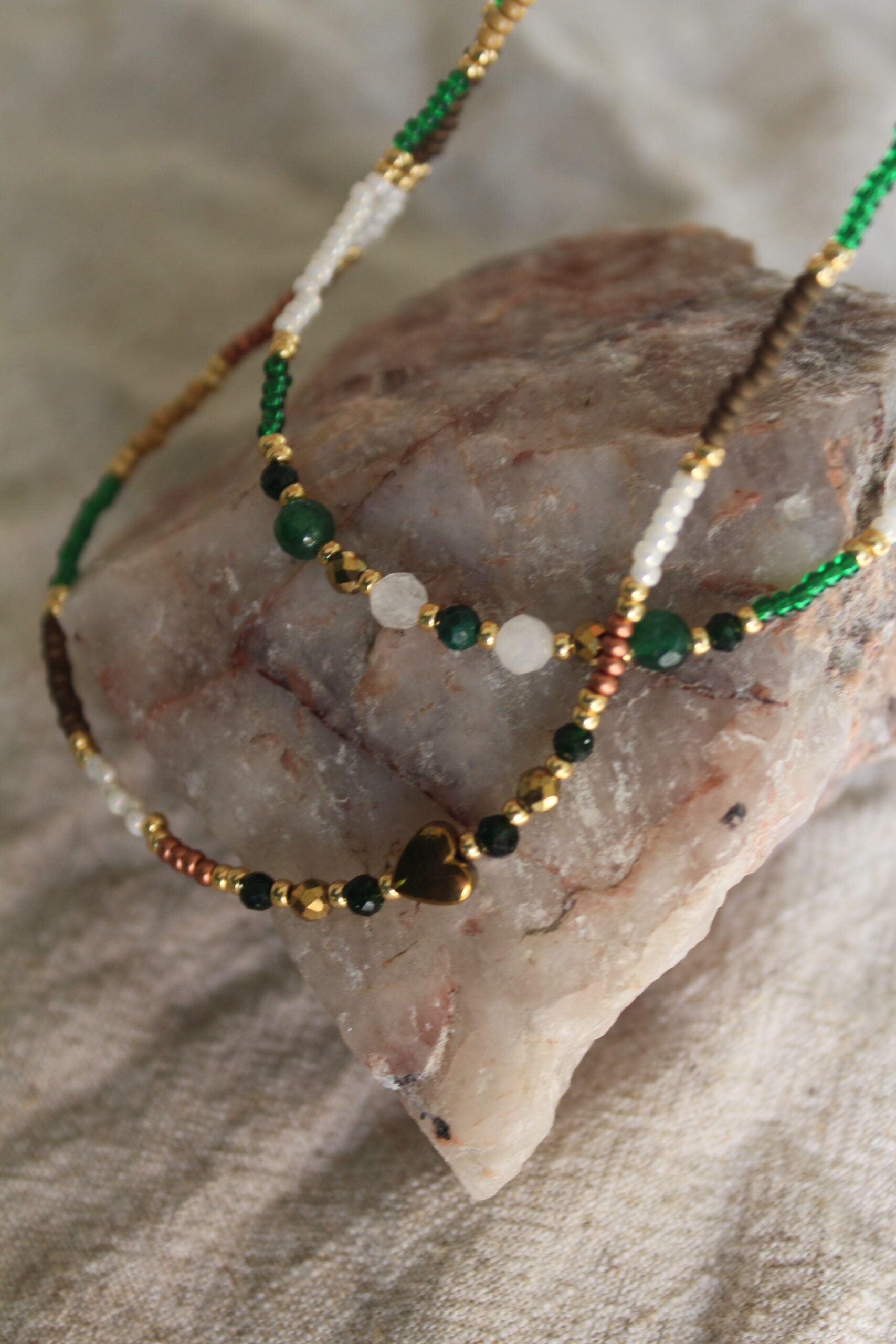 Naszyjnik ze szklanych koralików z kamieniami naturalnymi i sercem z hematytu: