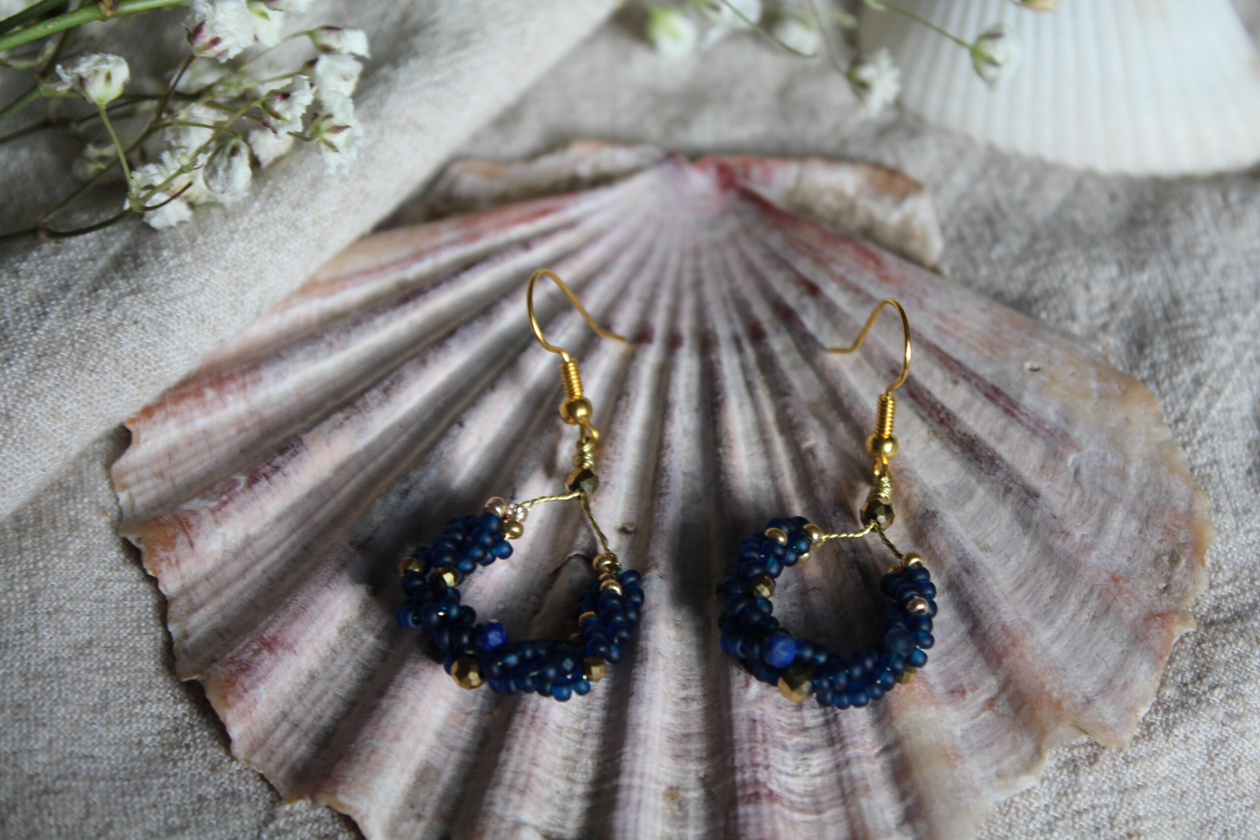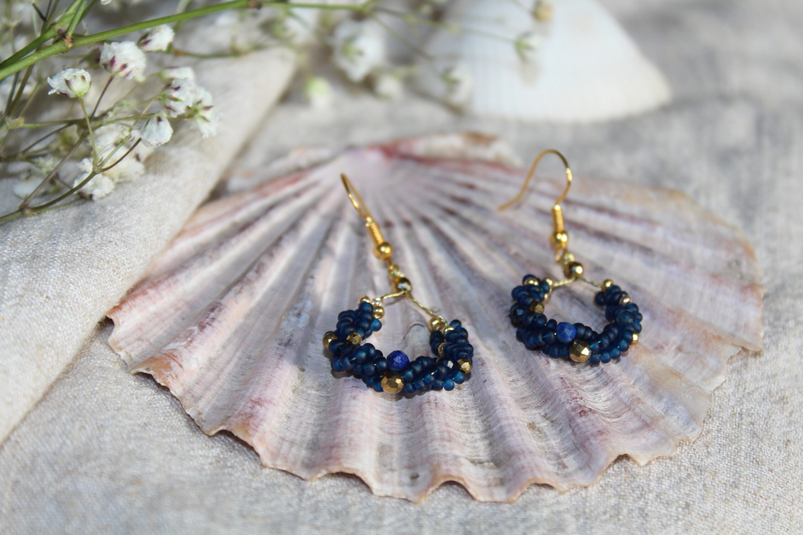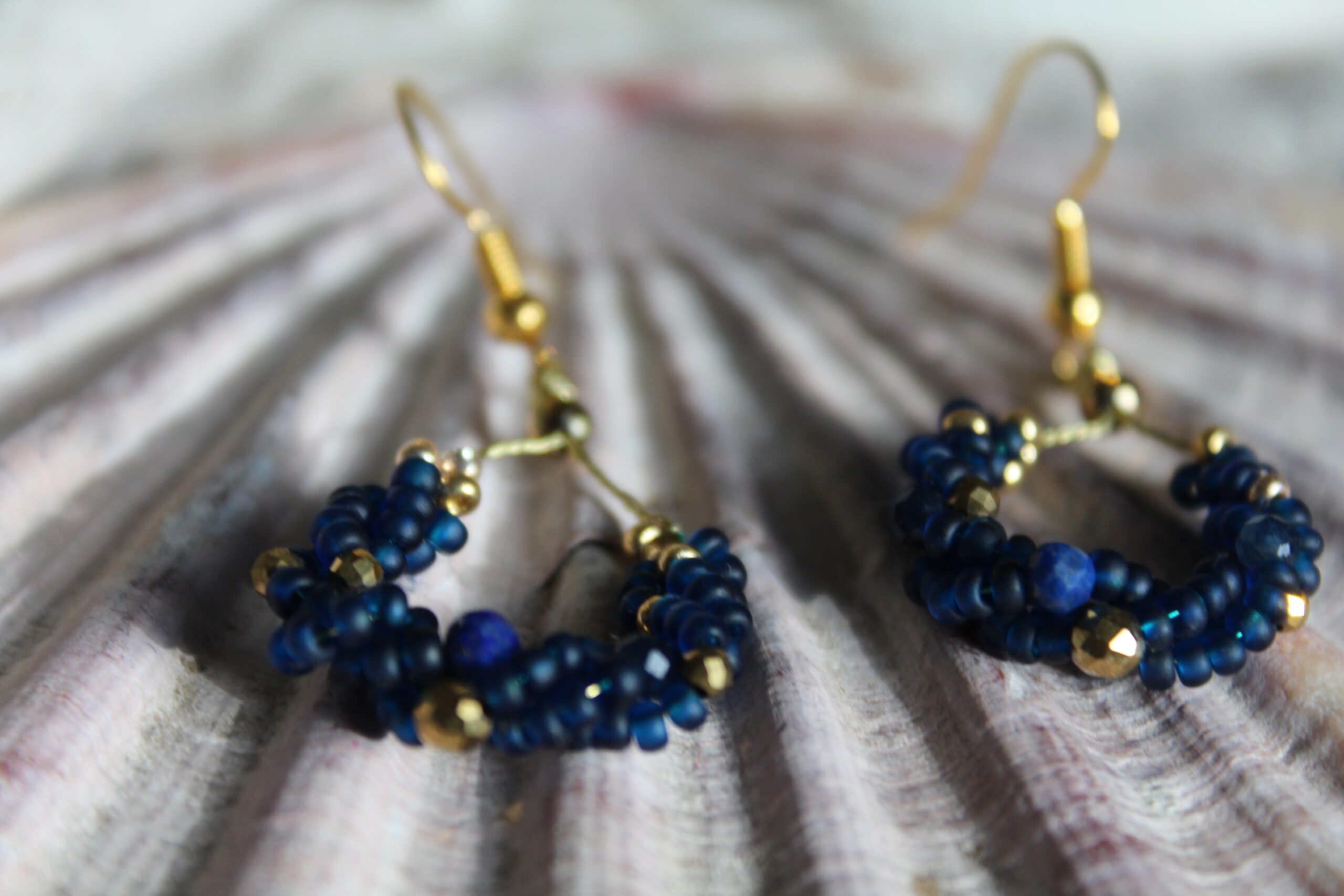 małe kolczyki z kamienami lapis lazuli oraz hematyt