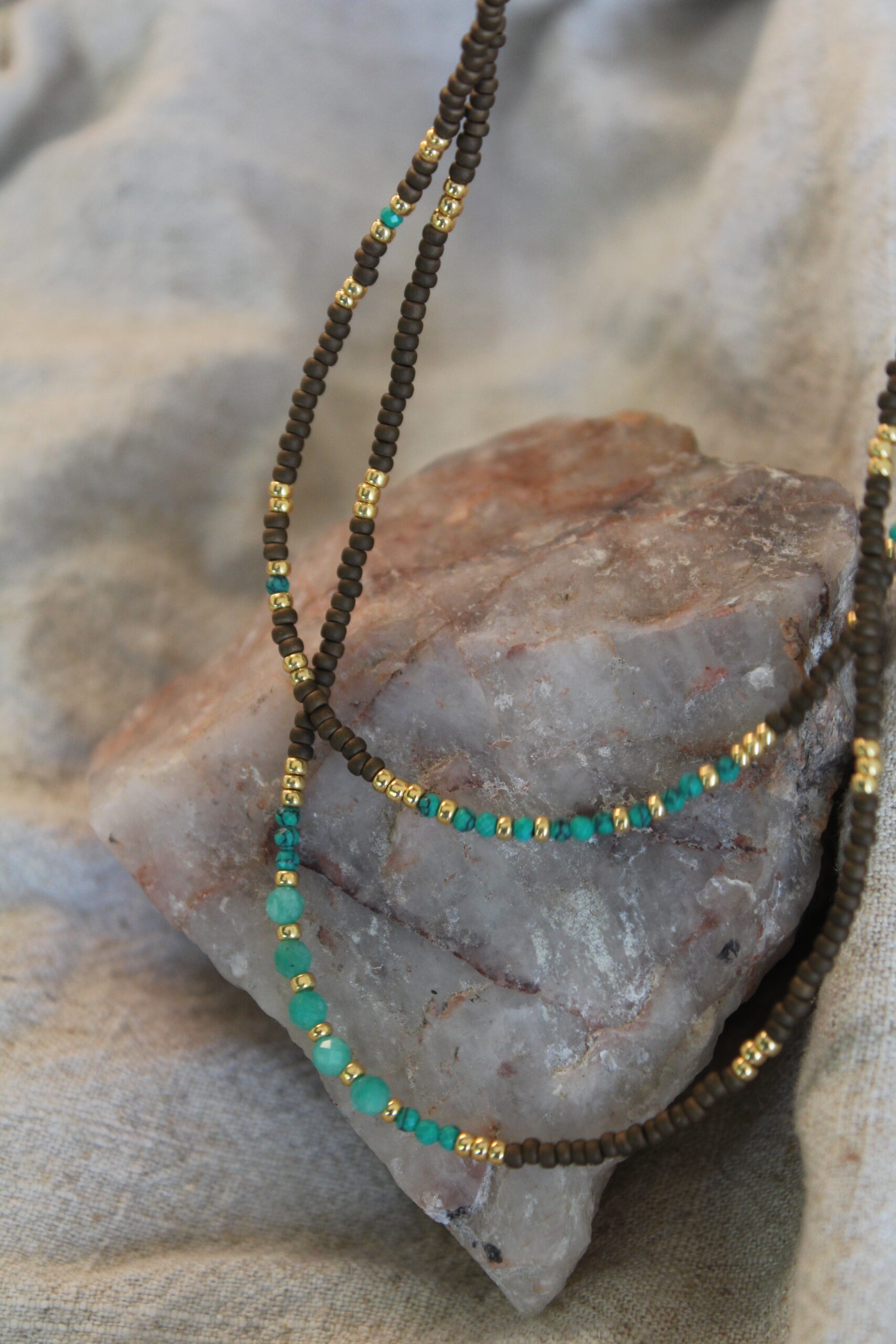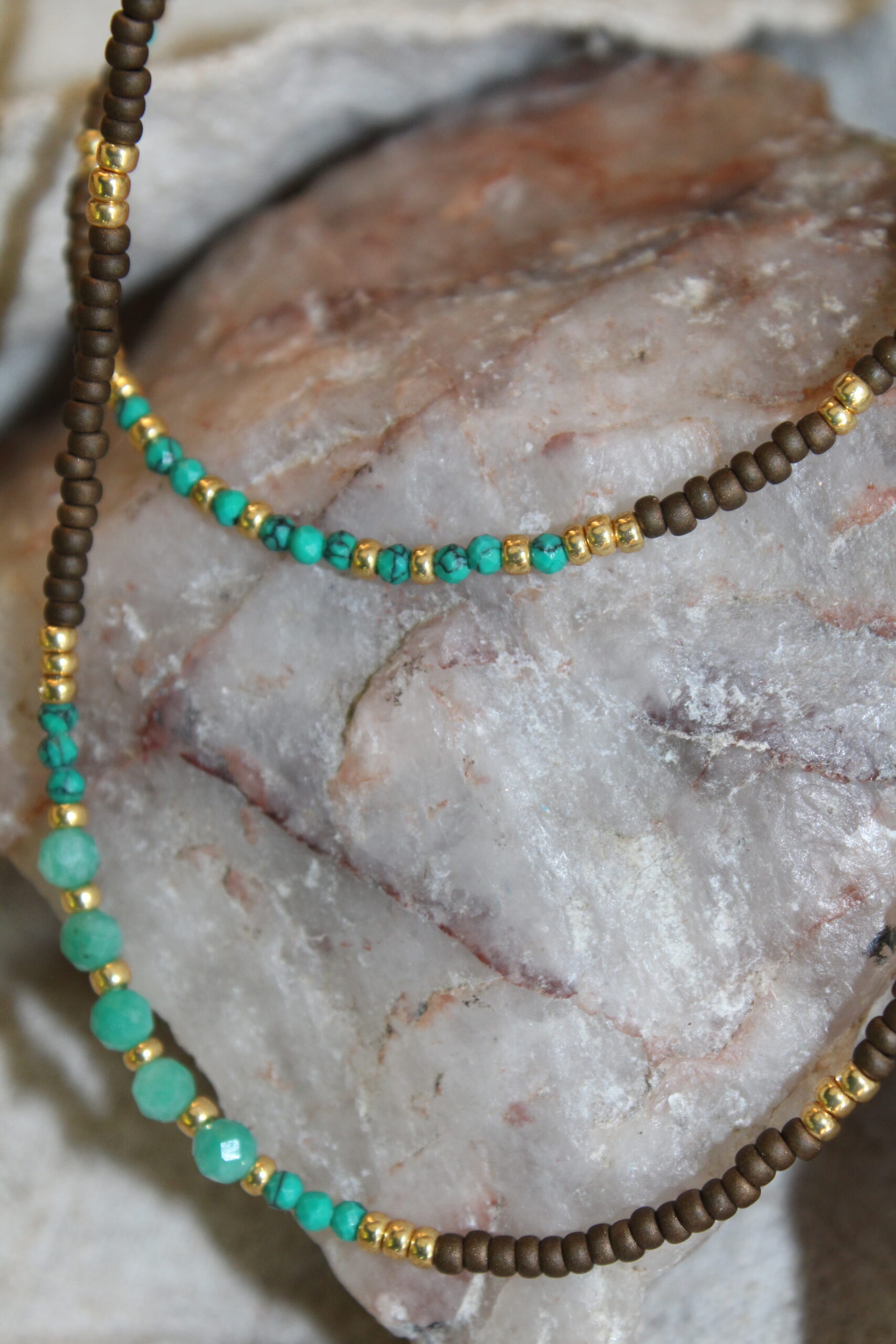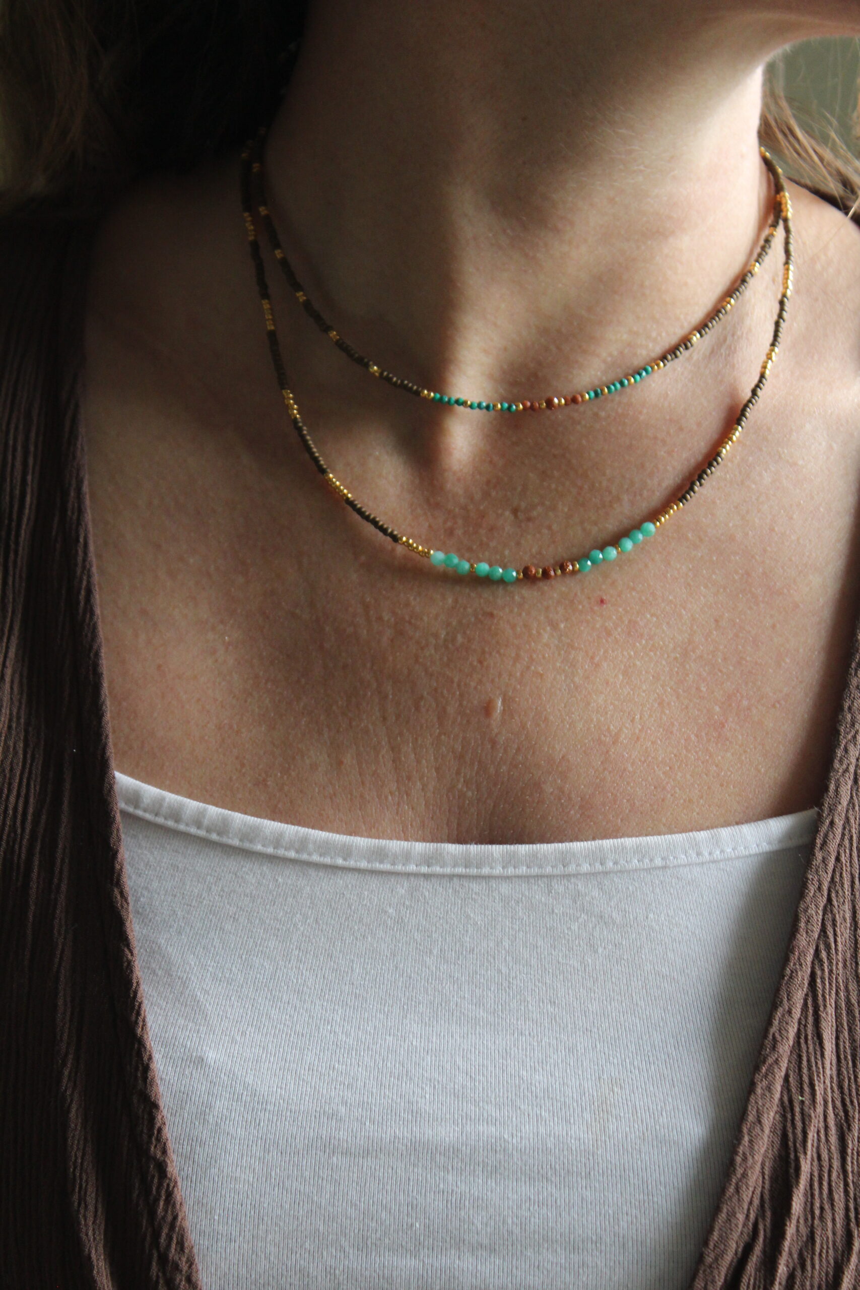 Kategoria: NASZYJNIKI Znaczników: AMAZONIT, BRĄZ, kamienie naturalne, NASZYJNIK PODWÓJNY, turkus